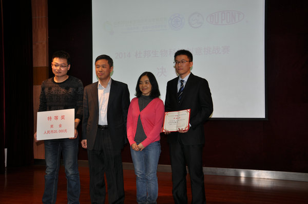 杜邦工业应用生物科技事业部与我校在人才培养、科研合作方面有着广泛的合作,于2009年至2011年期间在我校设立奖学金、奖教金。公司给予此项赛事大力支持,持续两年每年投入八万元用于在我校举办杜邦生物科技创意挑战赛。