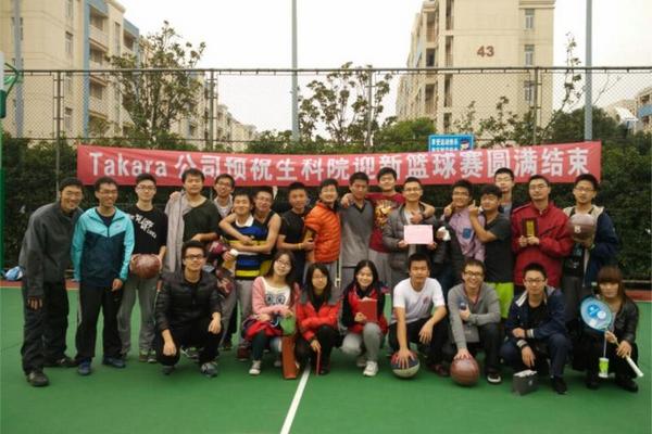 上海交通大学生命科学技术学院2014级“新生杯”研究生篮球赛于11月30日圆满结束。本次比赛由生命科学技术学院研究生会内联部组织,TAKARA宝生物赞助,全院研究生班级积极组队参加了比赛,历经十余天的激烈比赛,最终由研一2班夺得冠军。