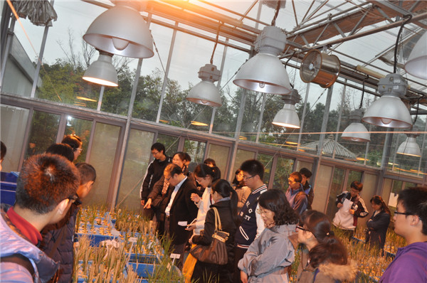 午餐之后,学生和家长们依次参观了学院生信系实验室和机房、微生物代谢国家重点实验室、公共仪器服务平台、实验教学中心和转基因科普基地。在实验室机房里,一位来自华东师范大学第二附属中学的高二同学惊叹道:“我从未想到生物实验室也可以是这样的,这颠覆了我对传统生物学的认知,令人印象很深刻。” 公共仪器服务平台中各种高端仪器牢牢地抓住了同学们好奇的目光,一位来自交大附中的同学兴奋地说道:“这是我第一次以如此近的距离接触这些实验仪器,以前只在书上或者电视上看到过。”在实验教学中心,老师热情的向同学和家长们介绍了生命学科教学实验项目。之后,前往转基因科普基地参观了种植水稻的温室和中华水稻文化的展厅,促进了大家对转基因食品安全和水稻文化相关知识的了解。活动最后,高中生和家长们还参观了上海交通大学致远游泳馆。