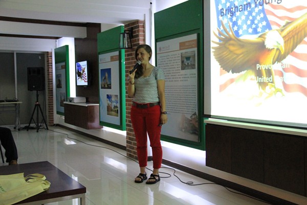 美国的风土人情一直是大家感兴趣的焦点。来自杨百翰大学的同学首先从美国的国旗说起,介绍了美国的历史。而从她对母校的介绍中,同学们也得知杨百翰大学是一所校规很严的私立学校,但是校园环境安静,是一个很适合学习的地方。