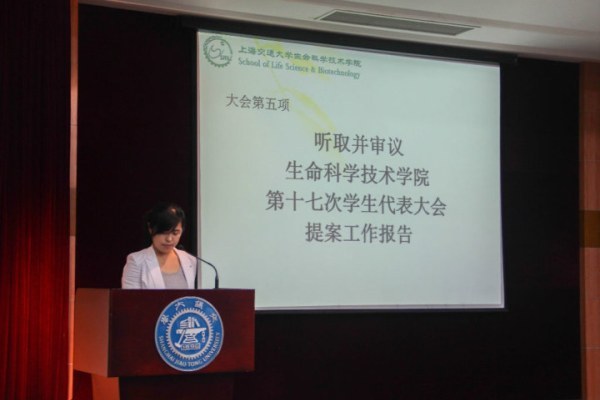 6月15日,上海交通大学生命科学技术学院第十七次学生代表大会在树华多功能厅召开。学院学生办公室主任李文纯、学院团委书记徐佰亮、辅导员王磊、部分兄弟院系学生会主席及生命科学技术学院50余位学生代表出席,会议由第三届团学联副主席王馥依主持。