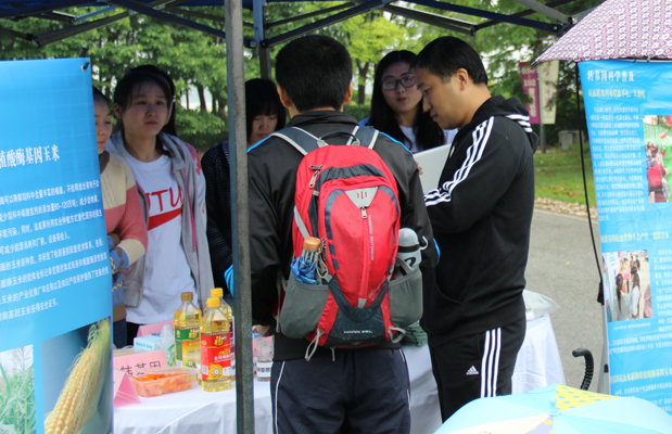 生命科学技术学院师生志愿者们向游客讲解宣传展板,分发科普手册,介绍生活中常见的转基因食品,耐心并热情回答游客提出的生活中有关转基因食品的问题。同时,国家转基因生物分子特征验证测试中心的多位专家教师也亲临现场,现场讲解并演示最新的转基因检测方法,通过科学实验对转基因食品的多种谣言进行了真伪辨识,让大家客观理性的认识转基因食品,消除对转基因食品的偏见。