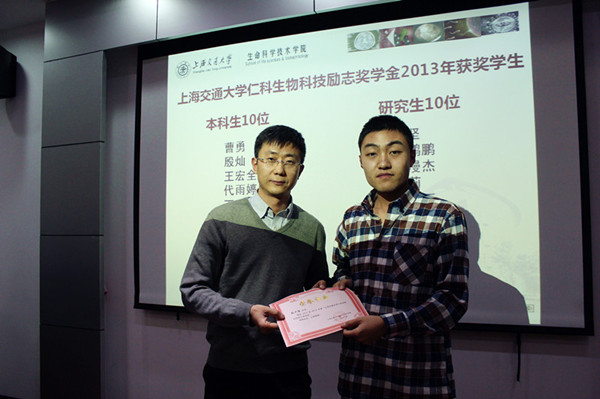 12月25日,上海交通大学仁科生物科技励志奖学金颁奖典礼在生命科学技术学院2号楼116室举行。奖学金捐赠人上海仁科生物科技有限公司总经理邱雁南校友,生命科学技术学院常务副院长张雪洪、学生工作负责人李文纯以及全体获奖同学出席颁奖典礼。