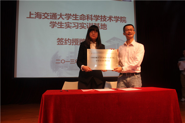11月1日下午,上海交通大学生命科学技术学院实习实训基地签约授牌仪式暨生物医药专场招聘宣讲会在上海交通大学闵行校区光彪楼一楼多功能厅举行。生命科学技术学院与中信国健药业股份有限公司、艾比玛特生物医药(上海)有限公司、上海透景生命科技有限公司、华大基因、上海伯豪生物技术有限公司5家企业签订实习实训基地协议并授牌。生命科学技术学院副院长陈峰,中信国健生物技术研究院院长吴辰冰博士,艾比玛特创始人兼总裁孟逊博士,透景生命科技创始人兼董事长姚见儿博士,华大基因研究院助理院长兼集团人力资源总监杨爽博士,上海伯豪生物人力资源部顾海琴等参加签约仪式。仪式由生命科学技术学院学生工作负责人李文纯主持。