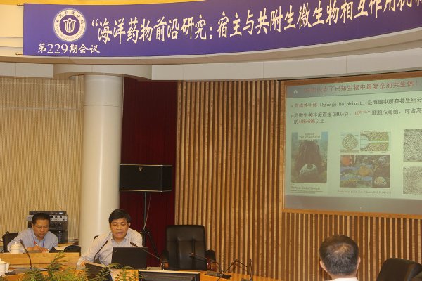 李志勇教授做了“海绵共生体种群结构、功能及其互作关系”的专题报告,从海绵共生微生物种群组成、代谢与功能、宿主与共生微生物的互作三个方面,较系统地阐述了海绵共生体这一自然界最复杂的共生体的研究历程、现状及发展方向,提出了海绵共生微生物成为重要的海洋药物来源的可能性;并针对海绵共生体的特点,就对如何解决海绵药源这一难题提出了建议。