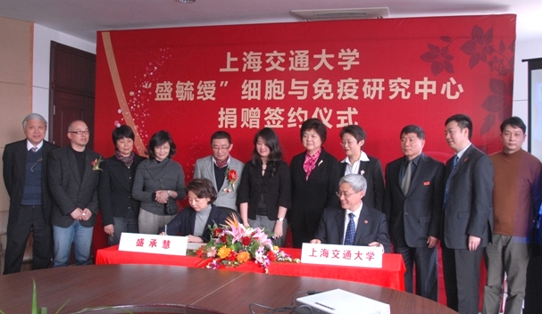 “盛毓绶”细胞与免疫研究中心捐赠仪式隆重举行[图]在115周年校庆之际,交通大学创始人盛宣怀先生的后人盛承慧女士出资1千万人民币,捐赠“盛毓绶”细胞与免疫研究中心签约仪式在陈瑞球楼隆重举行。校务委员会主任马德秀,昌兴国际控股(香港)有限公司主要持股人盛承慧分别在仪式上发表了热情洋溢的讲话。亚洲电视有限公司董事盛毓凤出席了捐赠签约仪式。副校长吴旦与盛承慧女士在热烈的掌声中,共同在捐赠协议上签字。
