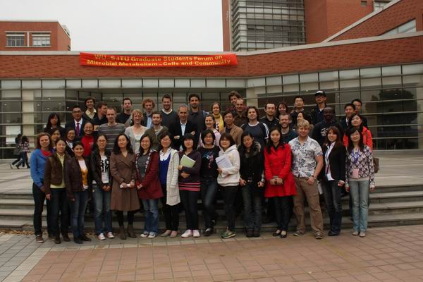 2011年4月21日,“微生物代谢-细胞与群落”上海交通大学研究生学术论坛在生物药学楼树华多功能厅顺利举行。此次论坛由生命科学技术学院微生物代谢国家重点实验室主办,微生物分子生态学与生态基因组学研究室和生命科学技术学院研究生会承办,荷兰瓦格宁根大学博士生代表团一行21人应邀参加。参加本次论坛的还有来自上海交大生命科学技术学院、系统生物医学研究院以及复旦大学等单位的的师生共约100人次。