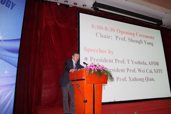 中国生物工程学会前会长杨胜利院士主持了开幕式。亚洲生物技术联合会(AFOB)主席Toshiomi Yoshida教授、上海交通大学副校长蔡威教授、华东理工大学校长钱旭红教授分别代表各主办单位致欢迎词。开幕式后,上海交通大学生命科学技术学院邓子新院士和日本东京大学 Teruy Nagamune 教授分别做了合成生物学与生物分子工程研究领域的主题报告,引起了与会者的热烈讨论。主题报告后,与会者来到各与会单位的展台区就相关问题进行了解和相互交流。在墙报区,来自各国的专家们和青年学生热烈讨论相关课题的研究进展,现场充满浓厚的学术气氛。