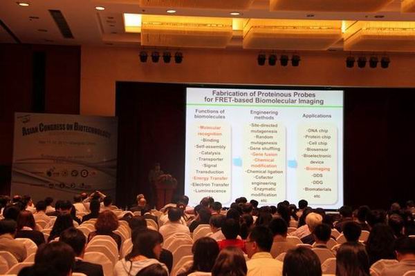 当今社会我们正面临环境恶化,能源危机,资源短缺和公共健康受到威胁等一系列挑战,在此背景下,本次会议围绕着“生物技术, 让生活更美好 (Biotechnology for Better Life)”的主题,邀请了上海交通大学邓子新院士,日本东京大学Teruyuki Nagamune教授,麻省理工大学Daniel I.C. Wang院士,瑞典Chalmers工科大学Jens B. Nielsen院士及韩国东国大学Jung-Keug Park教授做大会特邀报告,另外还邀请了包括加拿大皇家科学院院士Murray Moo-Young,日本学术会议成员(学士院院士)Tadayuki Imanaka、Takeshi Kobayashi,日本生物工程学会会长Shinji Iijima,德国科学院院士Alfred Pühler,韩国科技院院士、工程院院士Ho Nam Chang,韩国科技院院士Kee-Yoeup Paek、Jong Moon Park,韩国工程院院士Young Je Yoo、Yoon-Mo Koo、Sang Yup Lee、Byung-Gee Kim等,中华生化工程学会理事长曾耀铭、前理事长吴文腾等为代表的境内外生物工程技术领域的着名科学家和知名工业界人士做邀请报告,会议就生物加工、医药与医学生物技术、食品、能源、环境、农业、干细胞、生物材料、纳米、酶与蛋白质与合成生物学等生物技术领域的几乎所有主要方向展开了各种热烈交流和讨论。