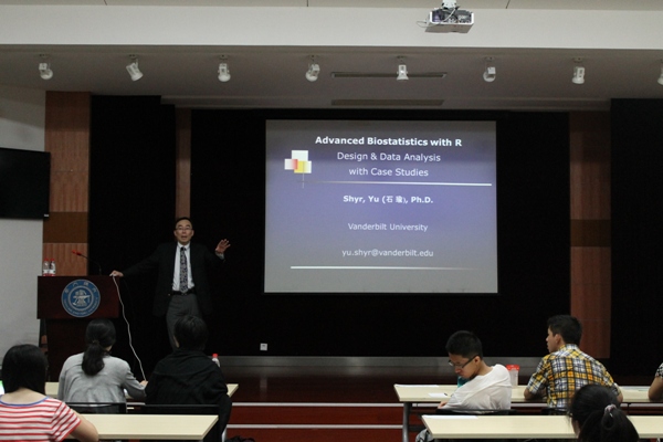 本届暑期学校的授课团队由来自美国范德堡大学知名统计学专家石瑜教授(已被正式聘为上海交通大学访问讲席教授)、李俊毅博士和上海生物信息技术研究中心谢鹭研究员、贾佳博士、同济大学朱瑞新副教授以及我校生命科学技术学院生物信息学与生物统计学系赵一雷、陈海峰、李婧、韦朝春、徐沁和吴茂英六位教师组成。 在往年教学内容基础上,今年的课程分为生物信息学和生物统计学两个模块。课程系统地介绍了基因组、转录组、蛋白质组、代谢网络以及结构计算、药物设计等分析方法及最新研究进展。生物统计学课程由石瑜教授主讲,其精彩的授课从真实FDA案例出发,深入浅出的介绍了生物统计学的从实验设计到推断分析的理论知识。同时,今年的课程增加了生物统计学上机实践课, 帮助学员提高实际操作能力。该课程吸引了80余名来自我校以及全国多个高校、科研院所的国内外学生、教师和研究人员注册参加。其中,10余名来自多个知名高校的本科生因对生物信息学与生物统计学方向感兴趣报名参加了此次夏令营活动。