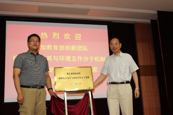 2013年7月14日,教育部创新团队发展计划“植物发育及其与环境互作分子机制”启动仪式在生命科学技术学院树华多功能厅举行。出席启动仪式的领导和专家有:教育部科技司综合处郑伟先生,上海市科委研发基地建设与管理处过浩敏处长、张露璐先生,上海交通大学副校长蔡威教授,中国科学院院士、上海交通大学生命科学技术学院院长邓子新教授,中国工程院院士、浙江省农科院陈剑平研究员,兰州大学副校长安黎哲教授,中国水稻所所长程式华研究员,天津科技大学校长王硕教授,上海交通大学科学技术发展研究院副院长关新平教授、冯雁教授,院长助理孙丽珍女士、重大专项办高立志主任,上海交通大学生命科学技术学院党委书记仰颐,上海交通大学农业与生物学院党委书记周培教授,上海交通大学生命科学技术学院副院长马小京教授,以及创新团队全体成员参加了启动仪式。启动仪式由关新平教授主持。