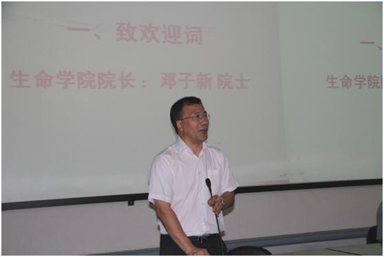 首先,生命科学技术学院院长邓子新院士向全体新生致欢迎辞,他代表学院全体教师向66名本科新生和143名研究生新生的到来表示热烈的欢迎和衷心的祝贺并表达了殷切的希望。他希望全体新生能够牢记“饮水思源、爱国荣校”之校训,继承交大人的光荣传统,胸怀理想、脚踏实地,扎实地掌握科学文化知识,锐日进取、开拓创新,将来为实现民族的伟大复兴而贡献力量。