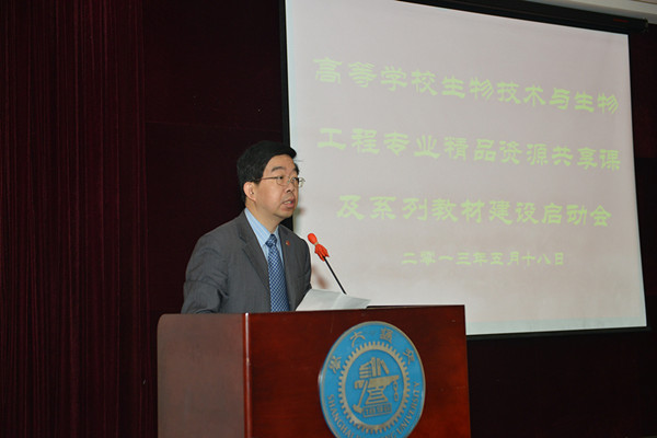 教育部生物技术、生物工程类专业教学指导委员会主任委员,上海交大生命科学技术学院院长邓子新院士作大会主题报告。高等教育出版社生命分社主任吴雪梅详细介绍了“十二五”期间国家精品课程转型升级为国家精品资源共享课程的情况,以及纸质出版与数字化内容相结合,建设新形态教材的特点和要求。与会专家围绕高等学校生物技术与生物工程专业精品资源共享课及系列教材的建设工作,进行了广泛交流与探讨。