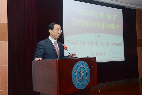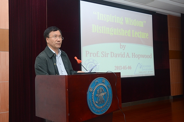 5月6日,英国皇家学会院士、爵士、瑞士苏黎世Eidgen?ssische技术学院名誉科学博士、匈牙利科学学会名誉会员、上海交通大学荣誉教授、国际着名遗传学家大卫·霍普伍德做客上海交大首期“启智讲坛”,为师生们做了题为“链霉菌基因组学:抗生素发现的新途径”的精彩演讲。中国科学院院士、上海交通大学校长张杰致辞,并为霍普伍德教授颁发纪念奖牌。中国科学院院士、上海交通大学微生物代谢国家重点实验室主任、生命科学技术学院院长邓子新主持讲坛。