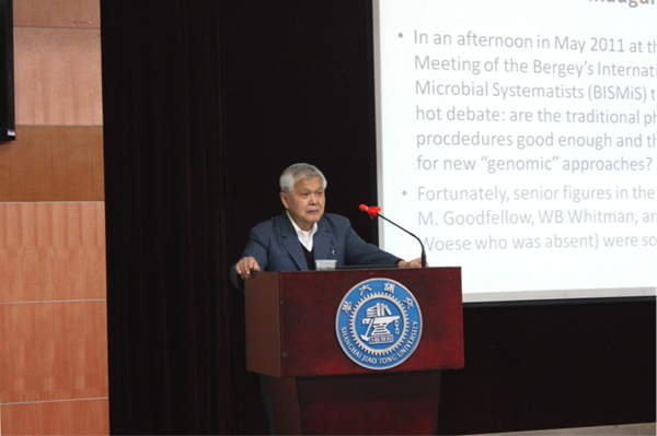 2013年4月25日,应生命科学技术学院赵立平教授邀请,复旦大学理论生命科学研究中心郝柏林院士来我院微生物代谢国家重点实验室做了两场学术报告,题为“原核生物分类面临的挑战和机遇”和“CVTree在种以下的高分辨力”。郝柏林院士是我国着名的理论物理、计算物理学家。1980年当选为中国科学院院士,1995年当选为第三世界科学院院士;2005年以来任复旦大学教授,美国圣菲研究所外聘教授,主要从事理论物理、计算物理、非线性科学和理论生命科学的研究,1997年开始,郝院士开始关注和研究原核生物的分类问题,在基因组与细菌的系统发育的关系研究方面取得了很大进展。