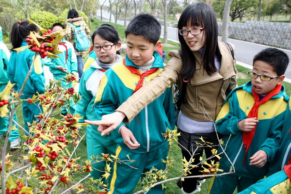 2013年4月1日下午,生命科学技术学院科学商店组织交大实小的全体四年级学生饶有兴趣地参观了上海交通大学的“园林植物标本园”,科学商店的志愿者们为小朋友进行了细致的讲解。