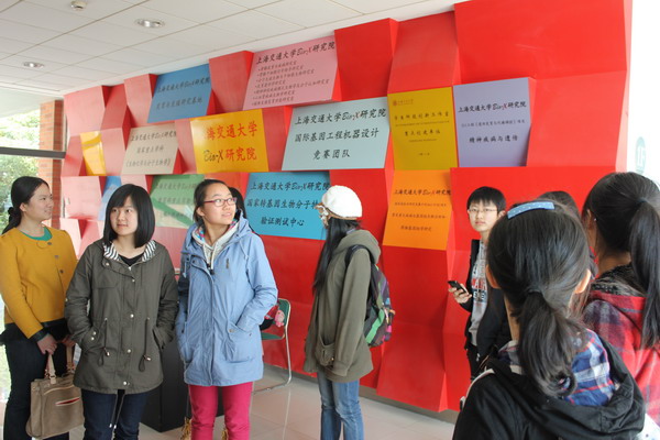 此次参观活动生命科学技术学院开放了四所具有代表性的科研团队实验室:微生物代谢国家重点实验室、Bio-X闵行校区大红楼、植物发育生物学与生物安全实验室、生物信息学与生物统计学系实验室。各实验室老师均向参观学生细致并科普化的讲解了实验室的研究内容、师资力量以及实验室各分区的功能定位等等,同时也各有特色的介绍了学生感兴趣的一些内容。微生物代谢国家重点实验室着重为大家介绍DNA上“第六元素”硫的故事;Bio-X介绍了交大引以为傲的iGEM国际竞赛团队参赛获奖的事迹;植物发育生物学与生物安全实验室介绍了水稻花器官发育的精细与复杂,还对大家关心的转基因问题进行了讨论;生物信息学系实验室还为大家准备了精美的宣传资料。学生们饶有兴致的参观并不时向实验室老师提出自己的想法和疑问。