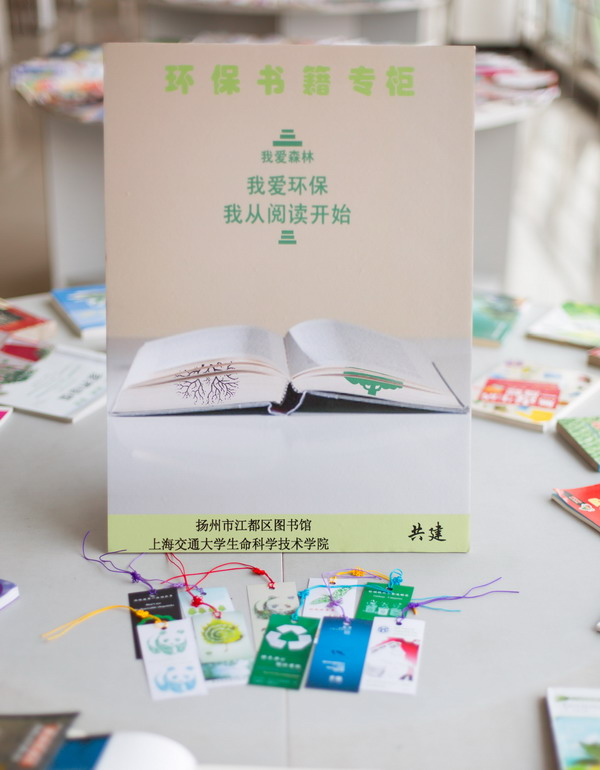 图注:学生党支部与江都图书馆共建环保书籍专柜