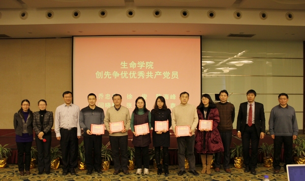 最后,学校规划处杨颉处长就生命类院系国际评估结果以及生命科学技术学院2012年完成目标情况进行了交流反馈。同时,会议还对2012年学院涌现出来的创先争优专项活动先进集体和优秀个人进行了颁奖表彰。