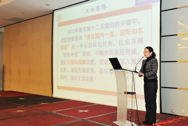 随后,院党委书记仰颐向大会做了生命科学技术学院党委2012年工作总结报告,分别从“谋划未来发展,推进机制体制改革、深化内涵建设,提升质量工程、夯实党建基础,强化服务保障”三个方面就学院党委的全年工作进行了总结汇报。2012年是实施十二五规划的关键年,学院党委围绕“建设国内一流、国际知名学院”这一中心目标与任务,扎实开展“创先争优”活动,涌现出了生物工程系党支部(上海市教卫党委创先争优先进基层党组织)等一批先进的基层党组织和师咏勇、马兆吉等一批优秀共产党员。学院不断夯实基层党建,强化引领和保障功能,促进学院深入推进改革、深化内涵发展,在实现重点突破的同时,谋求全面发展。总结报告同时还指出了学院下一阶段的改革发展目标以及需要重点推进的工作。