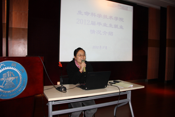 11月23日中午,生命科学技术学院2013届毕业生就业动员大会在生物药学楼树华多功能厅举行。学生办张燕红老师为大家详细介绍了今年的就业形势和就业相关流程,约有100多名2013届本科生、研究生到场参加。