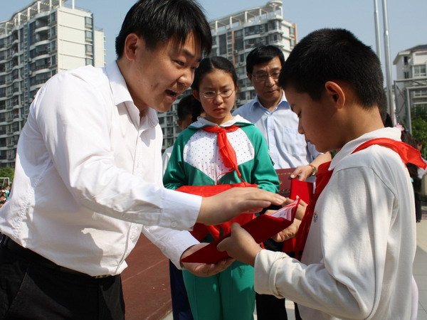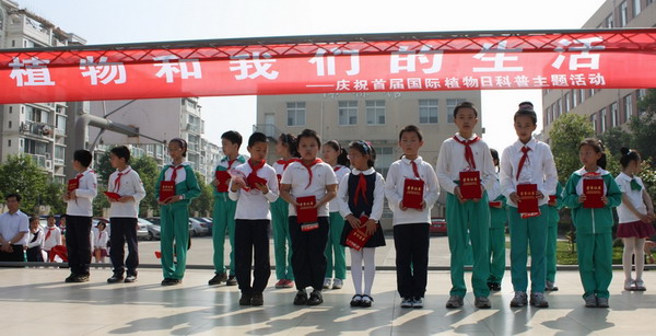 5月16日早交大实小与交大科学商店共同举行以“植物和我们的生活”为主题的升旗仪式。升旗仪式上生命科学技术学院学生工作负责人李文纯老师、上海交通大学转基因生物分子特征验证测试中心石建新副研究员、生命科学技术学院科学商店负责人王冲老师代表上海市植物生理学会为第一届国际植物日主题征文活动的获奖征文及优秀指导教师颁发奖状和奖品。本次征文由上海市植物生理学会主办、上海交通大学及其附属实验小学协办在交大实小专门设立参赛点,征集近50余篇优秀作文,小学生纷纷用手中的笔表达对大自然的热爱和对植物的爱护。