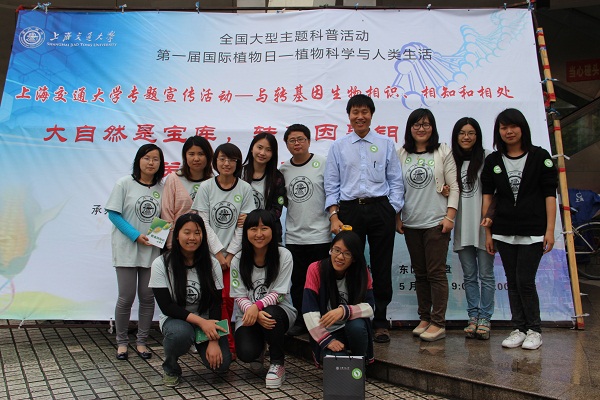 5月18-19日为第一届国际植物日,为进一步提高人们对植物科学与人类生活关系的认识,在欧洲植物科学组织(EPSO)的倡导下,由中国植物生理与分子生物学学会作为中国协调方于5月19日在全国范围举行“国际植物日”大型科普宣传活动。上海交通大学作为全国重要的活动地点之一,由上海交通大学国家转基因生物分子特征验证测试中心、生命科学技术学院科学商店共同举办以“与转基因植物相识、相知和相处”为主题的国际植物日大型科普活动。