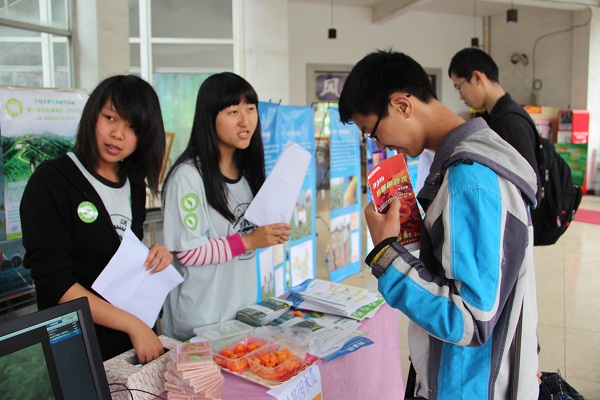 尽管下起了蒙蒙细雨,却丝毫不减大学生对本届国际植物日活动的热情。活动丰富多彩,转基因视频新颖生动,吸引了许多路过学生驻足观看;志愿者们对宣传展板和宣传手册详细的讲解,引发参与同学积极思考,志愿者们也热情回答了他们提出的疑问。同时,活动还设计互动环节,通过有奖竞答吸引了更多对转基因植物感兴趣的同学。