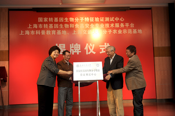 11月2日上午,“国家转基因生物分子特征验证测试中心”揭牌仪式在上海交大生命科学技术学院举行。“上海市转基因生物和食品安全专业技术服务平台”、“上海市科普教育基地”、“上海交通大学分子农业示范基地”揭牌仪式同时举行。北京大学原校长许智宏院士,上海交大党委书记马德秀、副校长吴旦出席揭牌仪式。仪式由上海交大科研院常务副院长刘燕刚主持。农业部、上海市、徐汇区、闵行区,部分国家转基因生物安全委员会委员,上海交大生命科学技术学院、农业与生物学院、医学遗传研究所、科研院、后保处、保卫处、设备处、财务处、分析测试中心等有关单位负责人参加仪式。