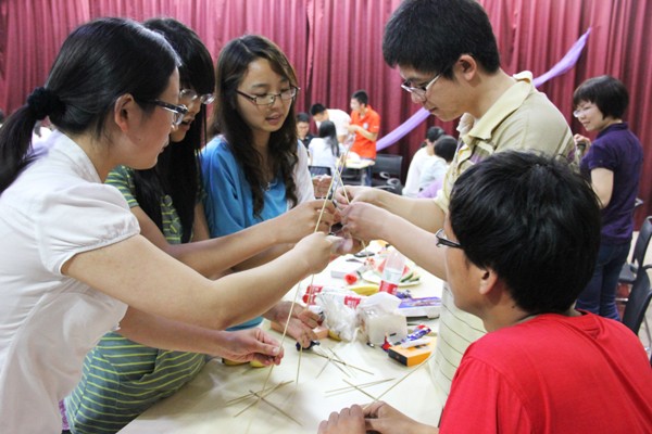 交流会一经通知便吸引了广大同学的广泛关注,经过紧张的报名和筹备阶段,活动当天共有40名研究生参加。交流会一开始,生命科学技术学院张燕红老师带领大家通过“解手环”的游戏成功破冰,让陌生的同学间迅速熟络起来;第二个环节是定位聊天,8分钟的交流之后,主持人通过随机抽取进场时发放的扑克牌提问,进一步让同学们了解其他人的特点和爱好;随后的各种精彩的小游戏更是拉近了彼此的距离——包括“copy不走样”、反转唱歌、视频表演等,之后的“挑战棉花糖”小游戏更是掀起了全场的高潮,各小组的同学默契配合,都将棉花糖按要求放在了自己用竹签搭建的塔尖上;活动最后,同学们用便签纸写下自己的感言和寄语。
