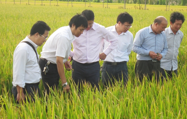 调研会后,各位专家和领导在分子农业示范基地进行了实地调研,并随后前往宝山杂交粳稻“金汇优50”实验基地和崇明示范种植基地进行了实地调研。