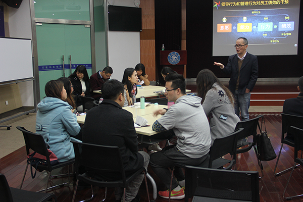 为提高同学们的沟通能力及领导能力,严勤勇组织同学们进行分组讨论活动,两人一组,围绕讨论话题,轮流扮演倾听者和叙述者。通过这个环节,同学们领悟到职场中良好沟通能力的重要性,严勤勇指出,领导能力的框架为“聚焦目标,问题解决,促进行动,关系营造,深度理解”,在建立良好协作关系的过程中,互相尊重,互相坦诚都尤为重要。