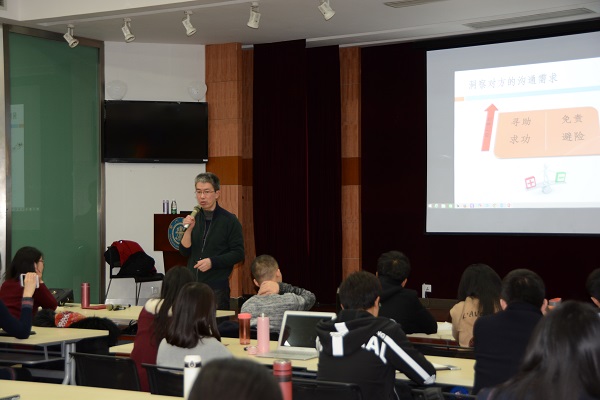 廖澄老师向同学们阐述了职场沟通的必要性,他指出,实现自我管理,拥有高效执行力,对工作保持激情对于一个优秀的职场人来说是必不可少的。
