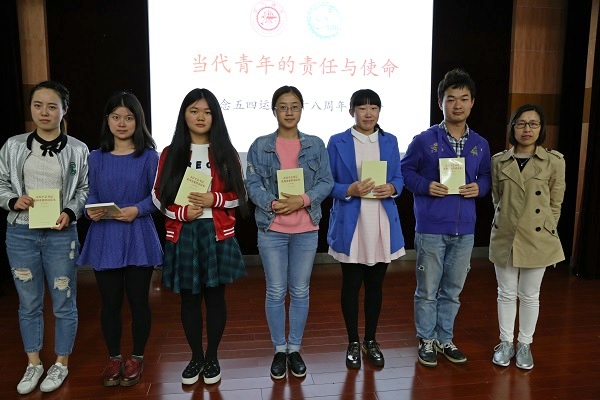 郑敏向同学们赠送了《习近平总书记系列重要讲话读本》,希望同学们能够坚持不懈地学习党的理论知识,勇于承担当代青年的时代使命,始终充满积极向上的正能量,洋溢蓬勃向上的青春活力,展现改革创新的时代风采。