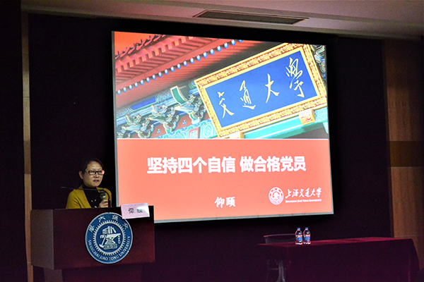 最后,学院党委书记仰颐以《坚持四个自信,做合格党员》为主题为全体同学上了一堂生动的党课。