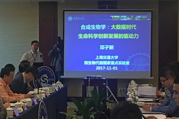 10月31日,国家自然科学基金委第193期双清论坛“‘合成生物学’研究前沿与进展”在上海举办。本次论坛由国家自然科学基金委员会生命科学部、化学科学部、政策局主办,上海交通大学承办。论坛主席由上海交通大学邓子新院士、中科院上海植生所赵国屏院士、中科院生物物理所张先恩研究员共同担任。来自清华大学、北京大学、上海交通大学、浙江大学、武汉大学、四川大学、深圳大学、中科院上海植生所、中科院生物物理所等23个单位的50余位合成生物学领域的专家、学者参加了论坛。基金委生命学部常务副主任杜生明出席并致辞,上海交通大学党委常委、副校长吴旦,科学技术发展研究院常务副院长关新平、副院长孙丽珍等参加论坛。邓子新主持论坛开幕式。