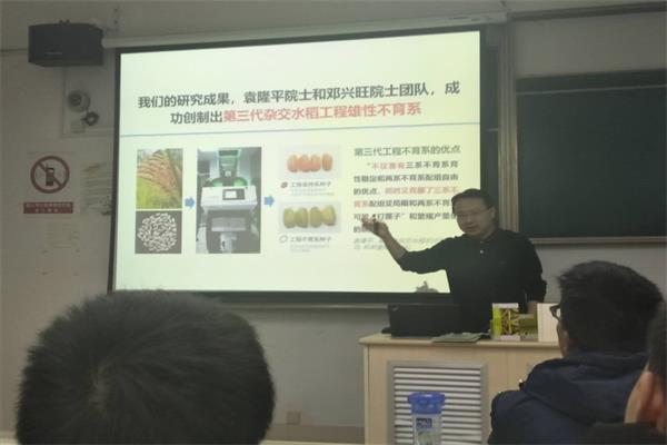 在短暂的自我介绍后,许杰分别从农业的起源与发展、“绿色革命”和“粮食战争”三个方面展开讲座,阐述了农业科技的重要战略意义。