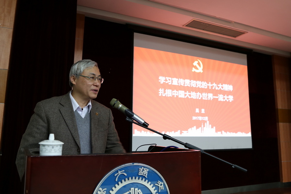 最后,吴旦希望广大党员同志能够全面学习深刻领会党的十九大精神,积极参与改革,明确任务,为建设“中国特色、交大风格、世界一流”贡献自己的力量,扎根中国大地办世界一流大学。
