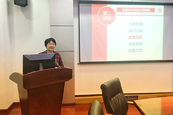 最后,张燕红就学生党员发展与转正流程以及各支部委员在工作中发挥的作用做了详细介绍,就党员发展转正中常出现的问题做了重点提醒,并强调了入党流程、材料书写的规范性。