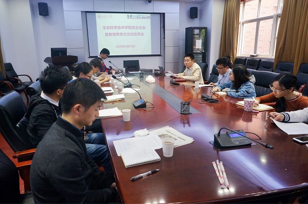 4月26日中午,生命科学技术学院在生物药学楼2-116召开班主任工作会议。会议就教育思想大讨论和节前安全问题进行工作安排。院党委副书记李文纯,团委书记刘环,思政老师李逸舟,本科生辅导员林海韵、成茜及本科生班主任出席会议。