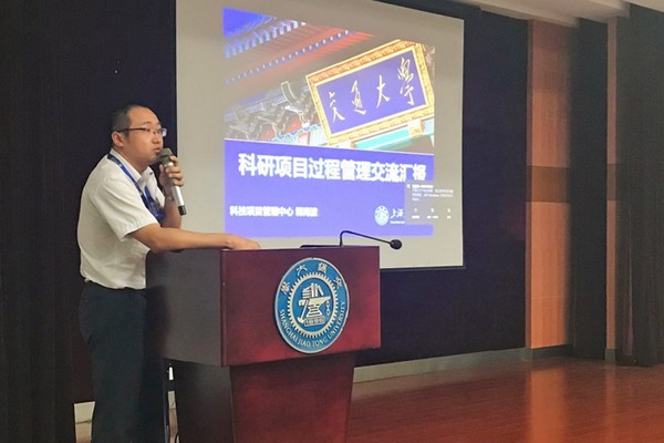 6月12日,生命科学技术学院在树华多功能厅组织科研业务与操作实务培训,校科学技术发展研究院科技项目管理中心主任韩海波应邀作为嘉宾,与来自生命科学技术学院、系统生物医学研究院、药学院等院系研究所的80余名科研秘书进行交流。