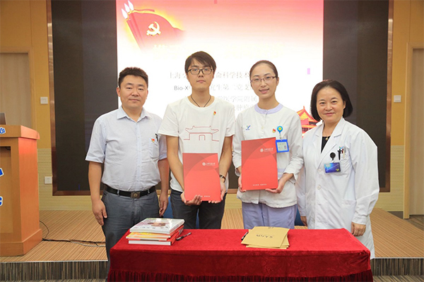 随后,双方支部进行了介绍和展示。生命科学技术学院Bio-X中心研究生第二党支部书记吴佳乐同志从支部组成、支委工作分工、成员专业背景、支部活动开展以及支部共建展望等五个方面做了详细介绍。儿童医学中心血液肿瘤党支部则通过一段小视频向大家展示了血液肿瘤中心老一辈专家栉风沐雨,砥砺前行的奋斗历程。他们积极响应国家号召,二十多年来的开拓进取,勇于创新,将儿童医学中心建设国际上有影响力的儿童血液肿瘤诊治中心。最后,两位支部书记周芬、吴佳乐同志代表所在党支部签订了支部共建协议,双方就支部共建目标、共建制度、共建内容等做了约定。血液肿瘤党支部向Bio-X中心研究生第二党支部赠送了白血病发病及治疗相关书籍,Bio-X第二党支部赠送交大纪念品。