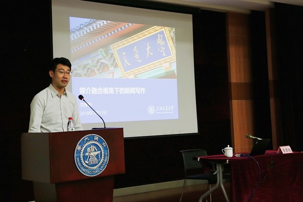 李厚锐结合自己从事新闻报道工作以来的经验和体会,做题为《融媒视角下的新闻写作》报告。他以融媒体视角下的新闻生产为授课主线,以“鸿门宴”新闻报道为例,生动地诠释了倒金字塔体与华尔街日报体的写作区别。又以优秀新闻案例分析,分别讲解了外宣稿件、内宣稿件和新媒体稿件在标题、段落、文字和配图上的特点和行文技巧。他认为,融媒体时代下的新闻生产,应是集中采集、分级开发、全媒推送,符合媒介融合时代碎片化传播特征。最后,他总结新闻写作始终要凝聚新闻事实的社会需求,在挖掘新闻价值和新闻点的同时,更要注重新闻要素的事实和影响力。