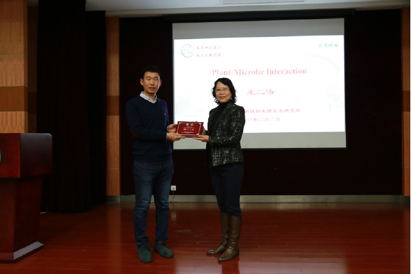 12月21日,第三期求真讲坛在树华多功能厅举行,中科院上海生命科学研究院植物生理生态研究所研究员王二涛应邀做了题为《Plant-Microbe Interaction》的主题演讲,来自生命科学技术学院、药学院、农生学院的教师、博士后及研究生近70人参加了此次讲坛,讲坛由生命科学技术学院常务副院长冯雁主持。