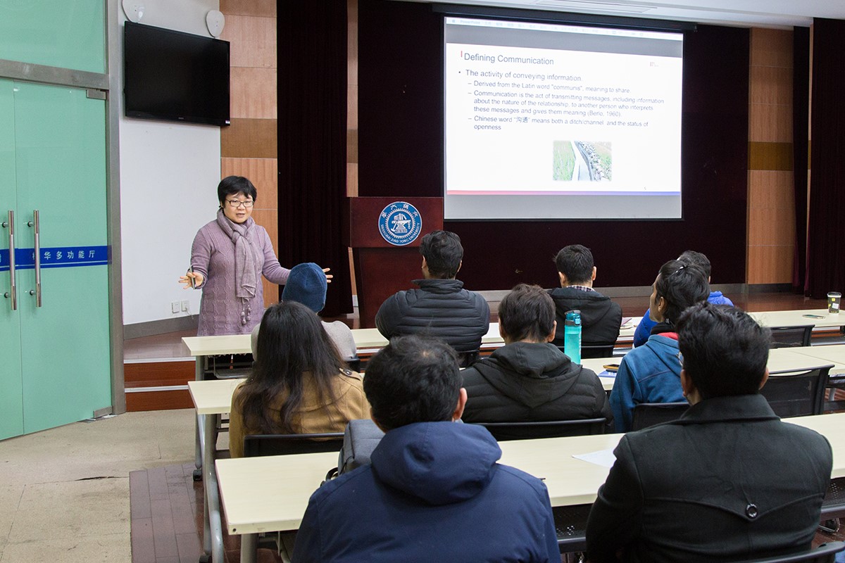 为正确引导留学生知华爱华, 12月25日,生命科学技术学院在树华多功能厅面向留学生举办了Cross-cultural Communication(跨文化交流)讲座。安泰经济与管理学院路琳教授应邀作为主讲人,与留学生们一同分享了她对跨文化交流的理解。