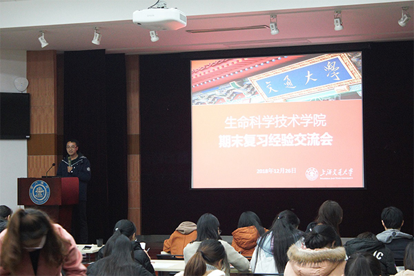 为帮助2018级研究生巩固学科专业知识,生命科学技术学院学生办于12月26日在树华多功能厅组织期末复习经验交流会。本次交流会邀请了2017级优秀学生代表樊文杰和刘文浩交流学习方法和复习心得,100多名2018级研究生参与。