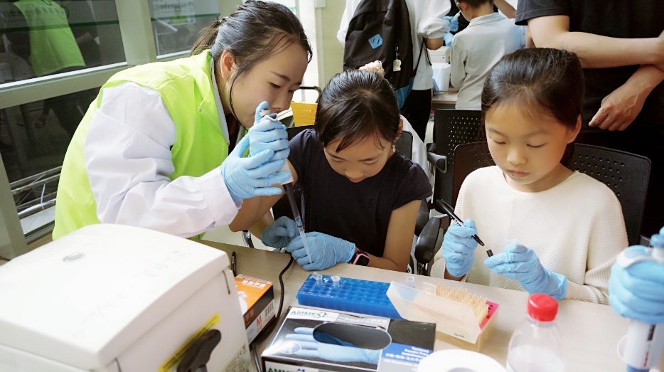 随后,在志愿者的引导下,观众们走进微生物代谢国家重点实验室,亲身感受微生物代谢科学研究的趣味和魅力。在展示大厅,小朋友们纷纷参与到“深海高压模拟”,了解了深海微生物在高压和常压下的不同形态;“看见DNA”实验很受大朋友们的关注,在志愿者的讲解下,通过分子生物学实际操作,亲眼见证了生物DNA的出现,赞叹着生命科学的神秘与奇妙。