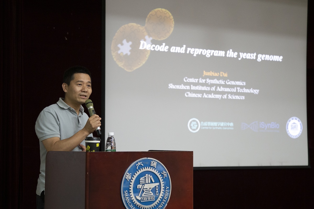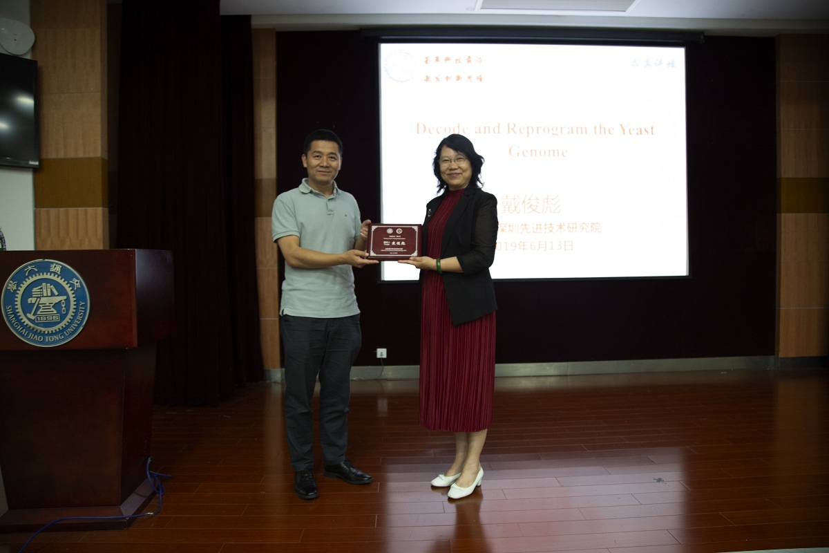 6月13日,中科院深圳先进技术研究院戴俊彪研究员应邀做客“求真讲坛”,做题为《Decode and reprogram the yeast genome》的主题报告,来自生命科学技术学院、系统生物医学研究院、农业与生物学院、药学院的教师、研究生、博士后60余人参加了本次讲坛,讲坛由生命科学技术学院常务副院长冯雁教授主持。