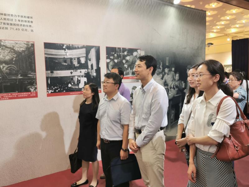 面对一幅幅反映上海解放70年来沧桑巨变的珍贵图片、一段段展现上海人民矢志奋斗的历史影像,党员们驻足观看,不时交流讨论,重温历史岁月。