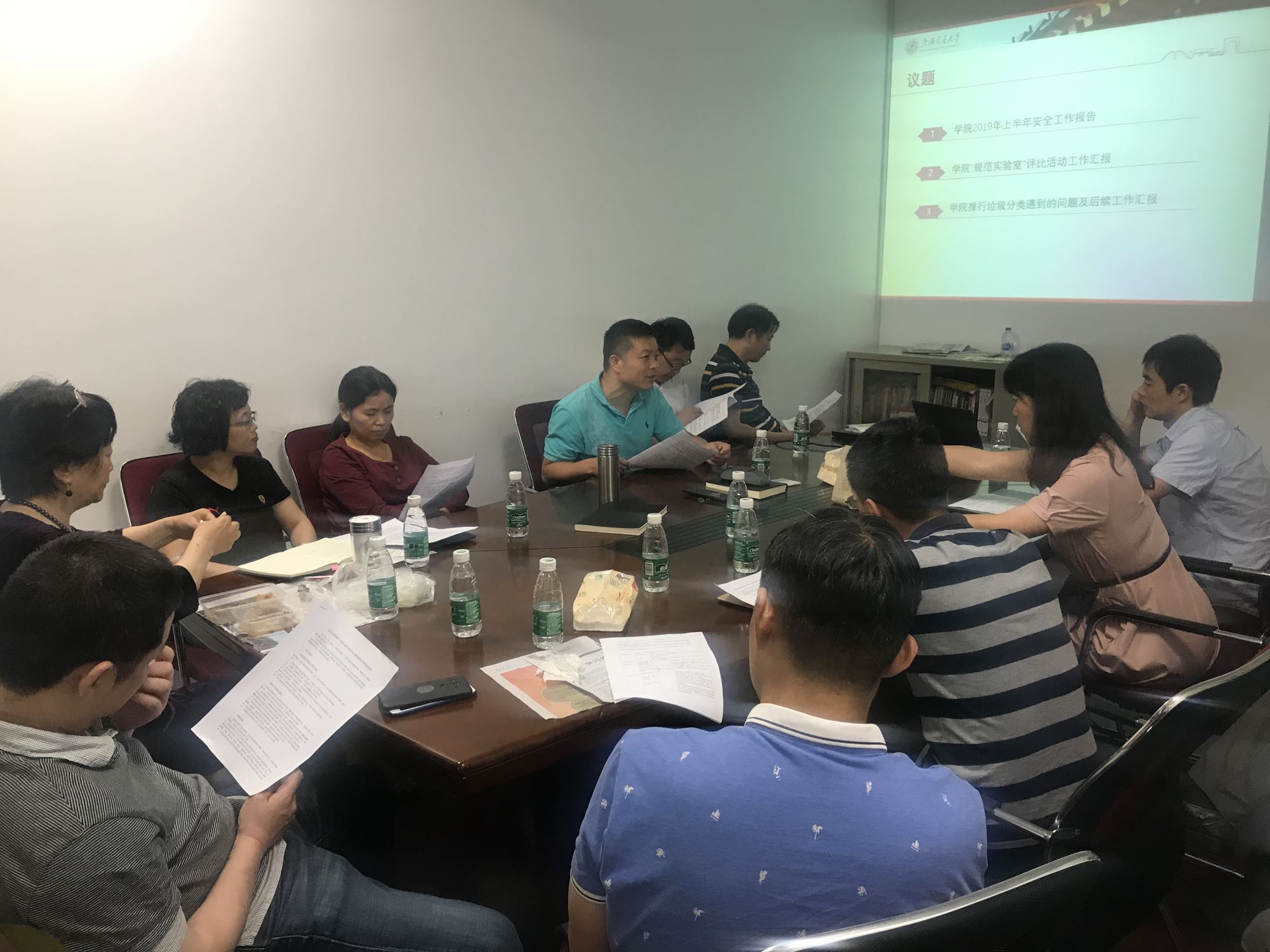 首先实验室与公共资源管理办公室做了”学院2019年上半年安全工作报告”。曲美玲具体汇报了学院春季学期安全工作总体情况、春季学期安全检查情况、校园安全生产月系列活动。